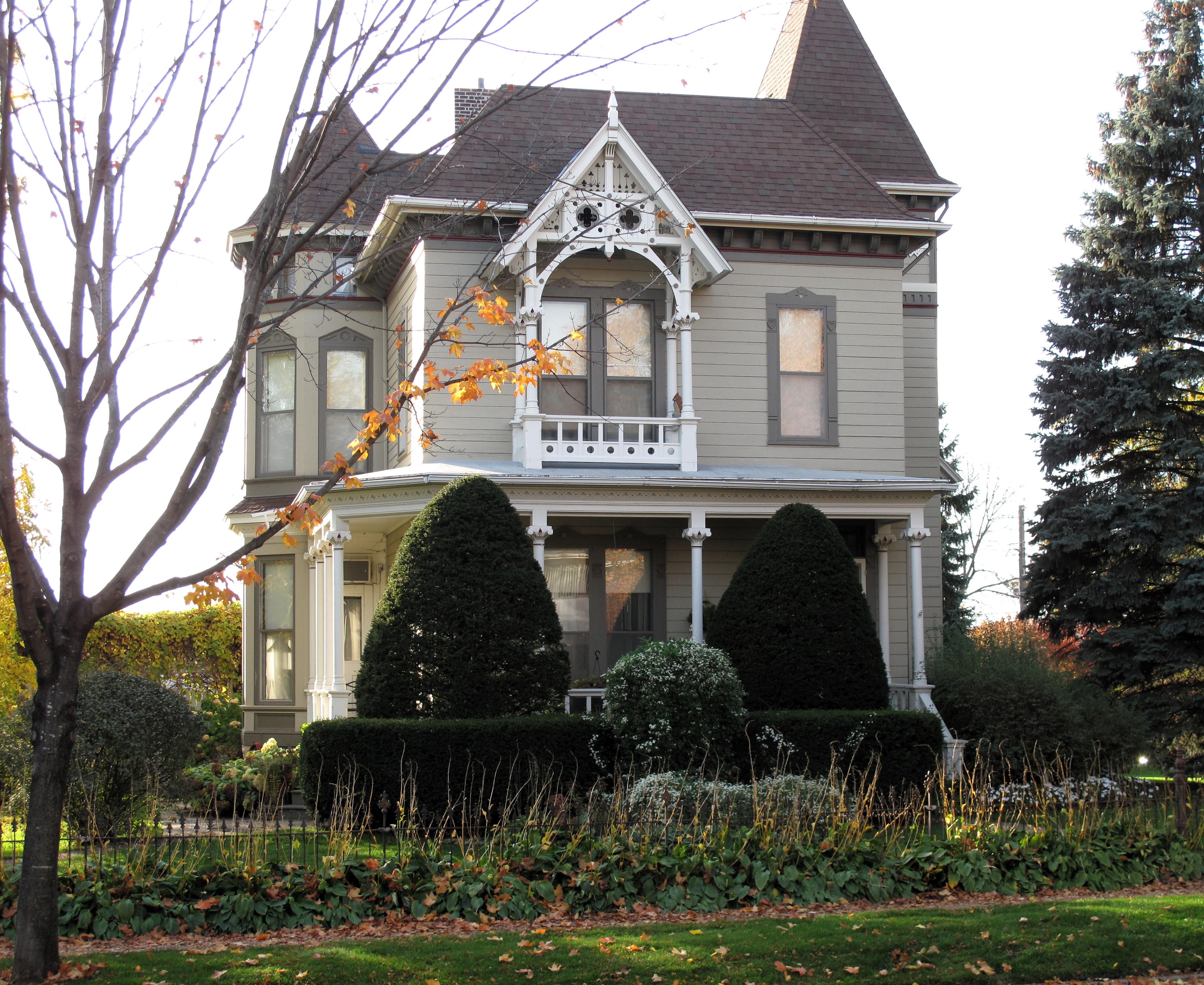 A few blocks from downtown, Hudson’s residential streets feature a collection of fine houses. They are situated behind wide sidewalks beneath grand shade trees. By now (October 10th), the trees have lost perhaps half their leaves, and those remaining are gold or red.
