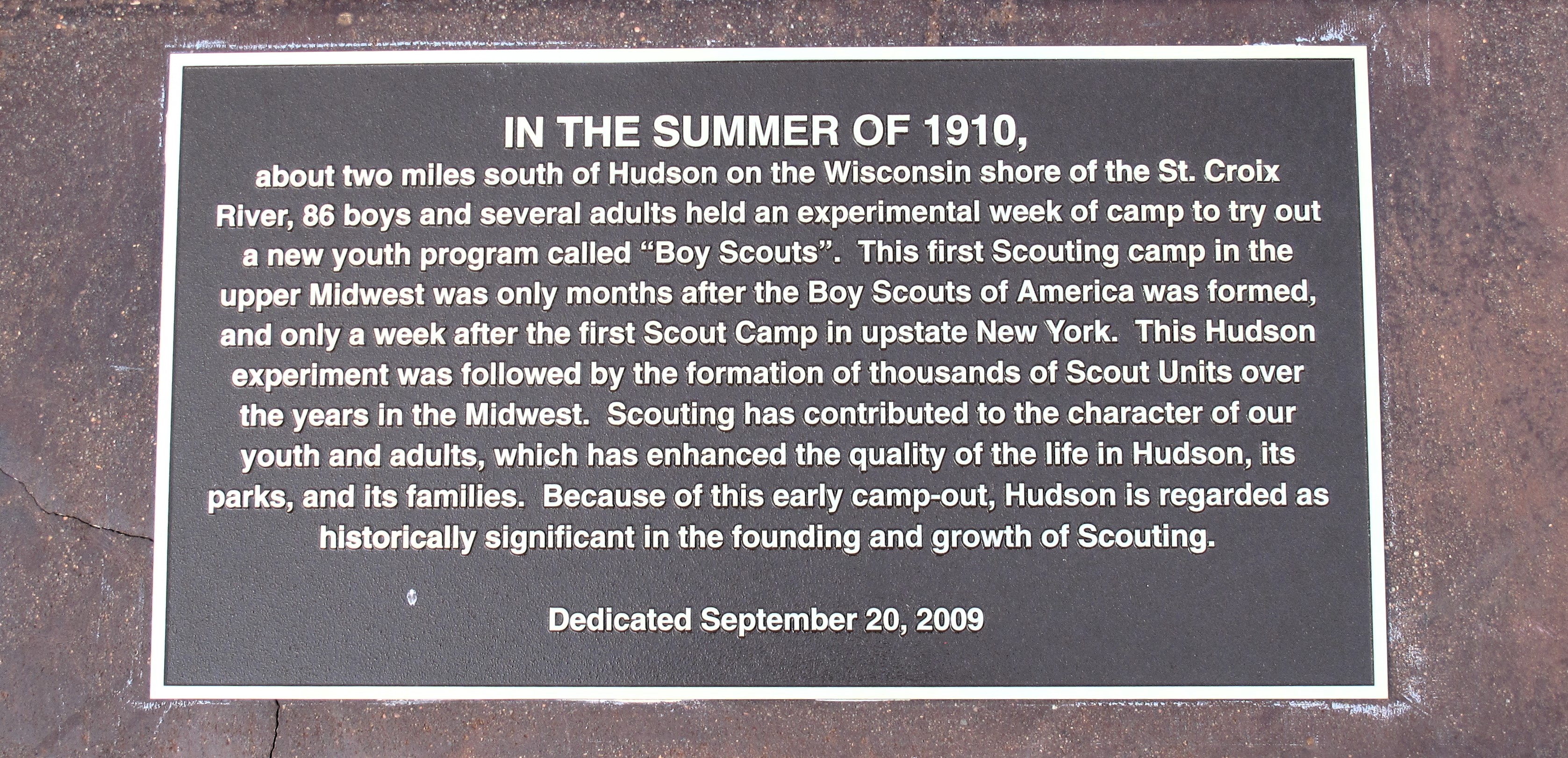 The park includes places for fishing from the old auto bridge, places to moor boats, and a memory of an early encampment of the Boy Scouts in 1910: