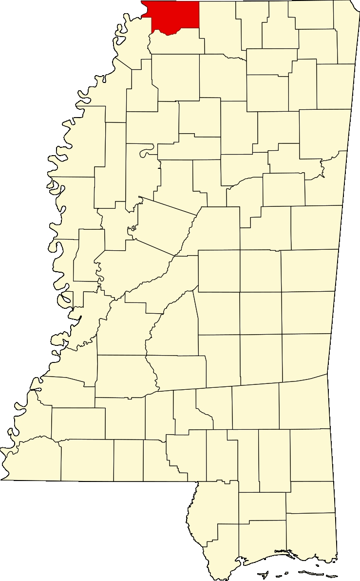 DeSoto County, Mississippi, is highlighted in red within a map of the state.