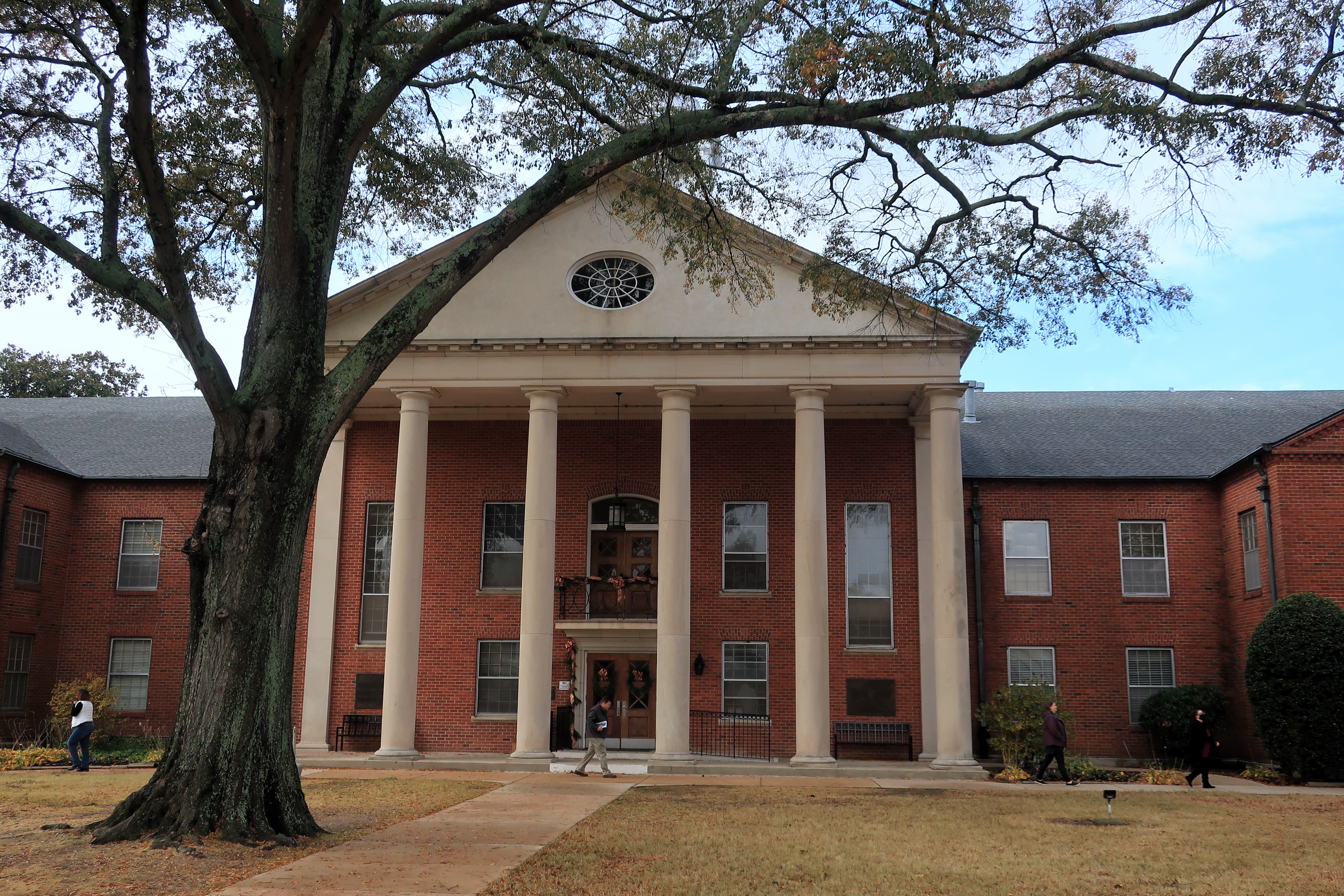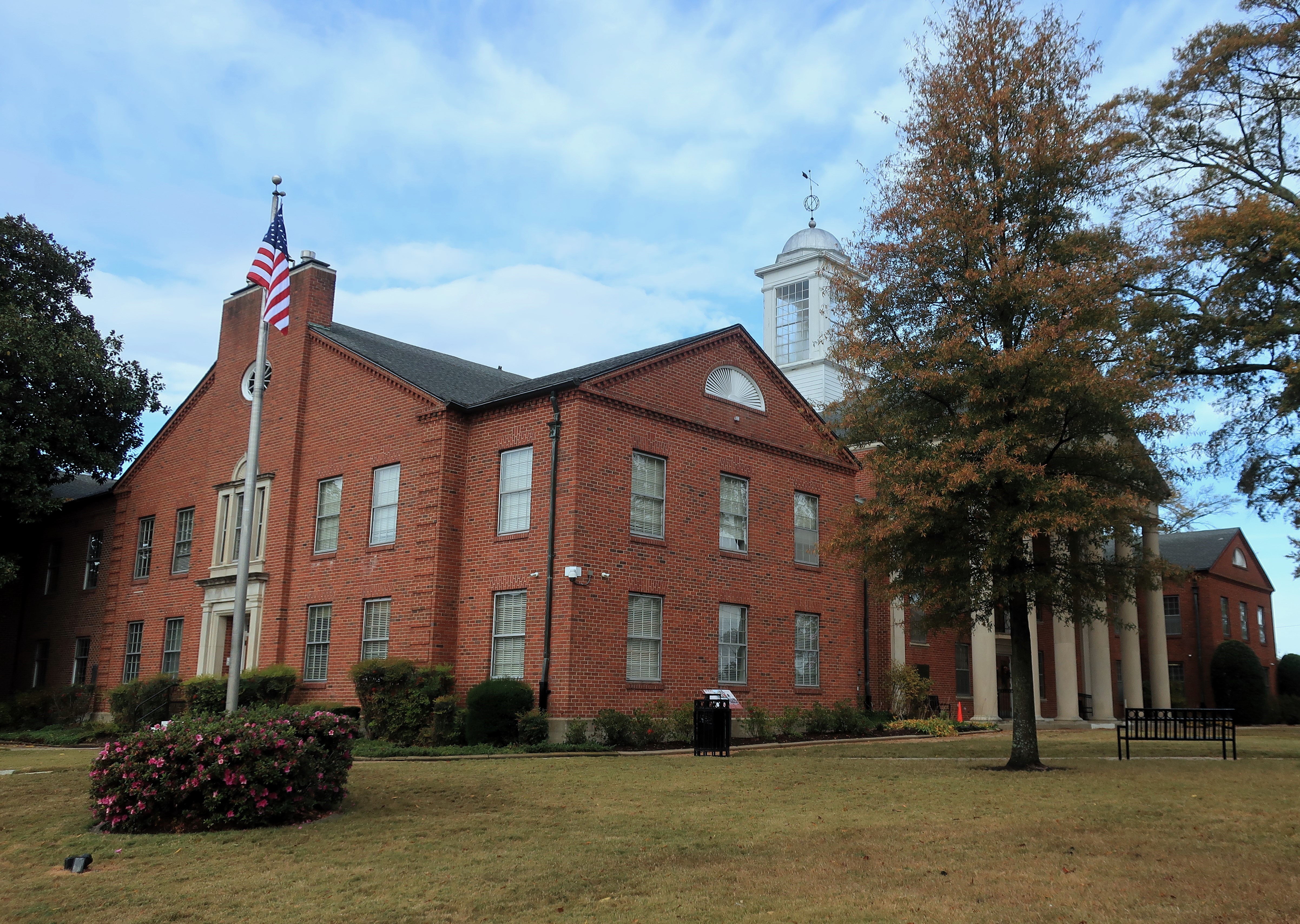 The trees surrounding the DeSoto County Courthouse (below) have lost enough leaves to create an orange carpet in front of the courthouse. Still, enough leaves remain to make for colorful photographs.
