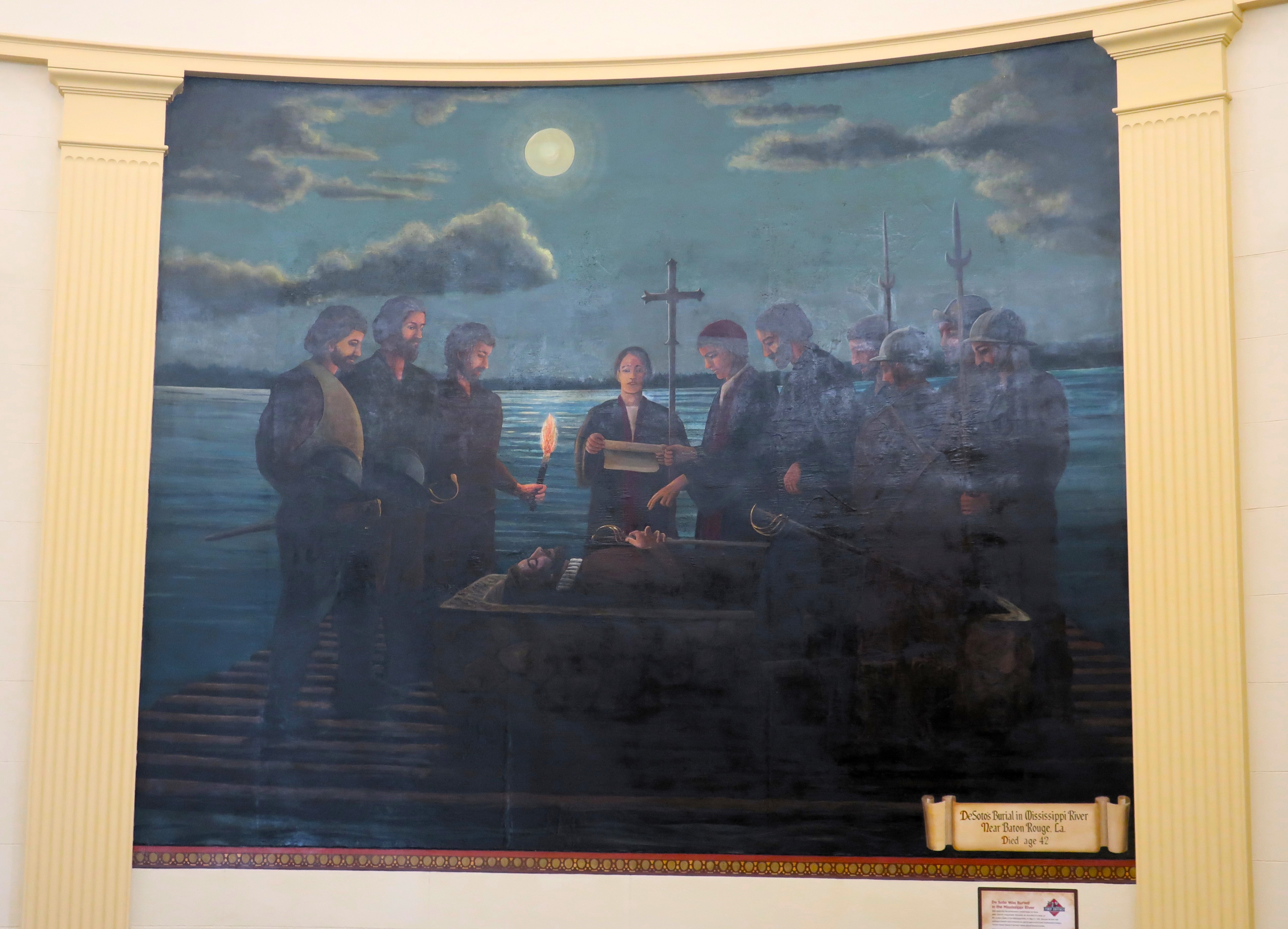 De Soto was buried in the Mississippi River near modern-day Baton Rouge, Louisiana. He died at age 42.