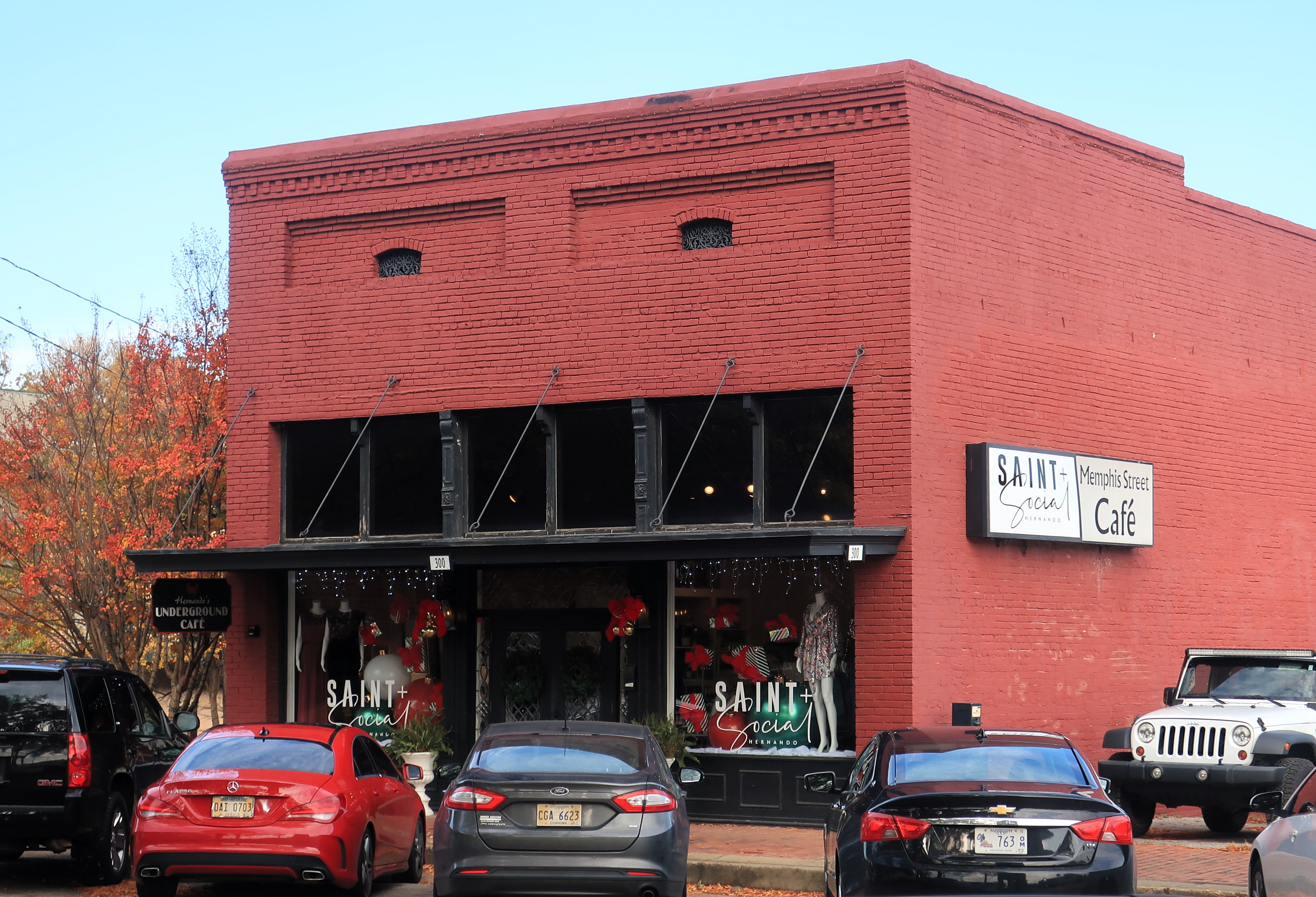 Hernando’s Courthouse Square is already decorated for Christmas and quite picturesque. In the photos below, the Christmas tree on the left stands on the street corner in front of the DeSoto County Courthouse. The buildings shown on the right and bottom are close by.