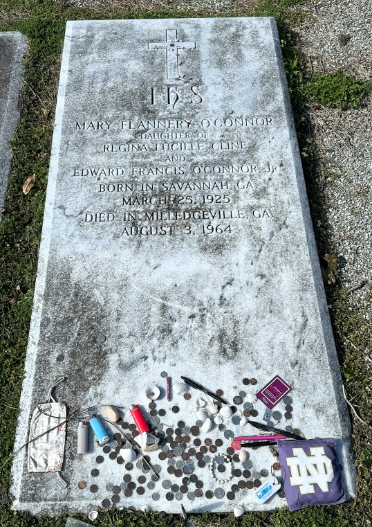 (below) the grave of Flannery O’Connor in the Memory Hill Cemetery in Milledgeville.