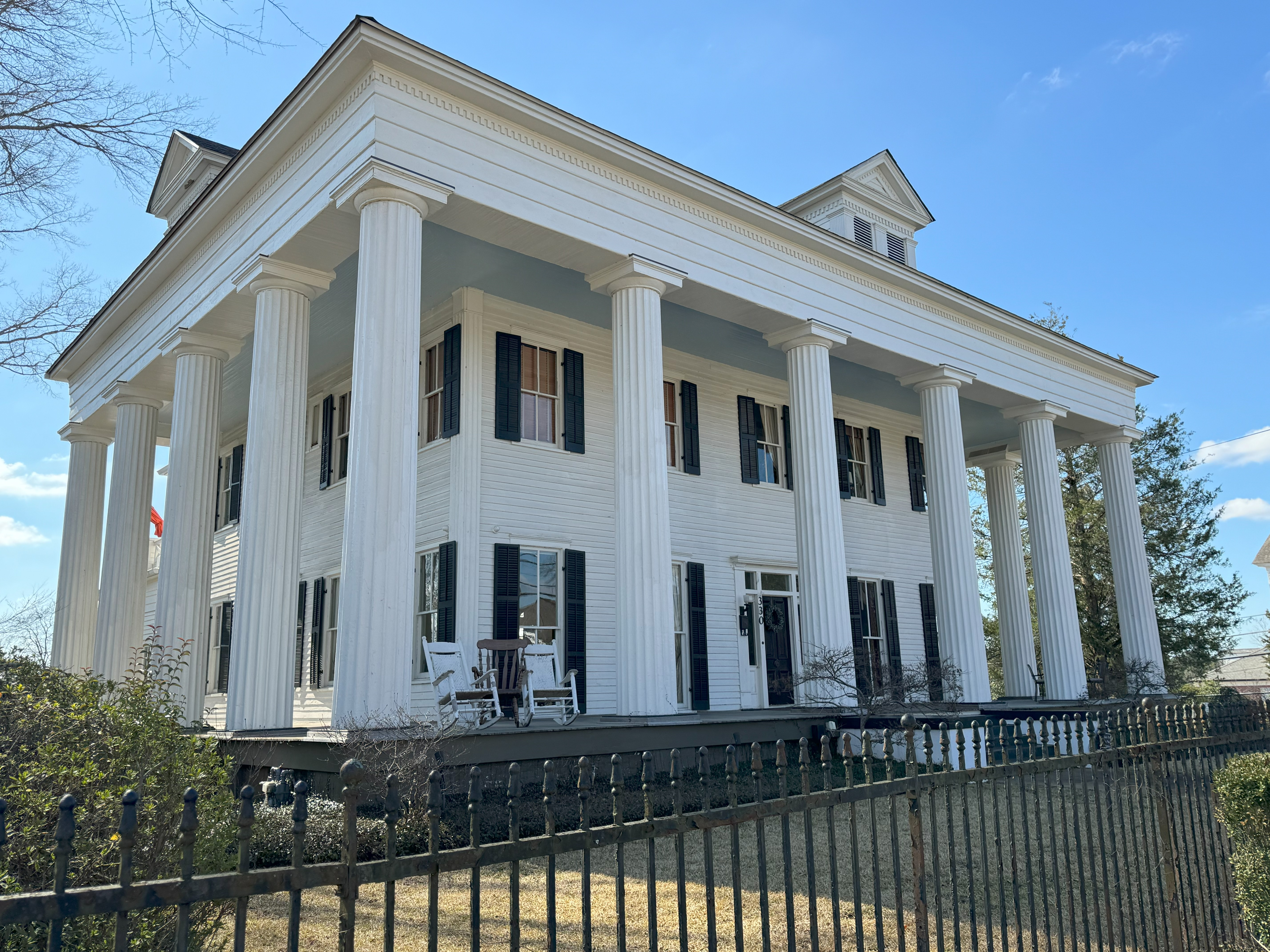 After finishing my tour of the old executive mansion, I spent an hour wandering around the residential streets near downtown. I found some grand old homes while enjoying the live oaks and sunshine. Many of these homes were built in the classical style with pillars in the front. A few were built before the Civil War, but most were added later. Let’s call this wandering “time well-wasted.”