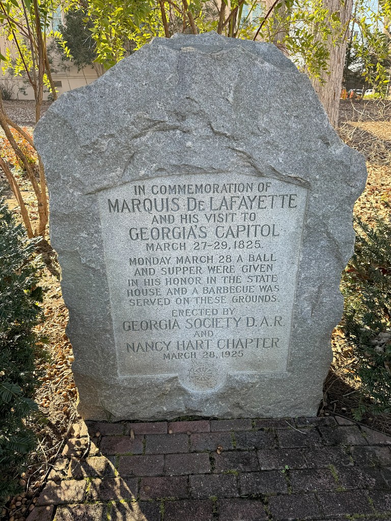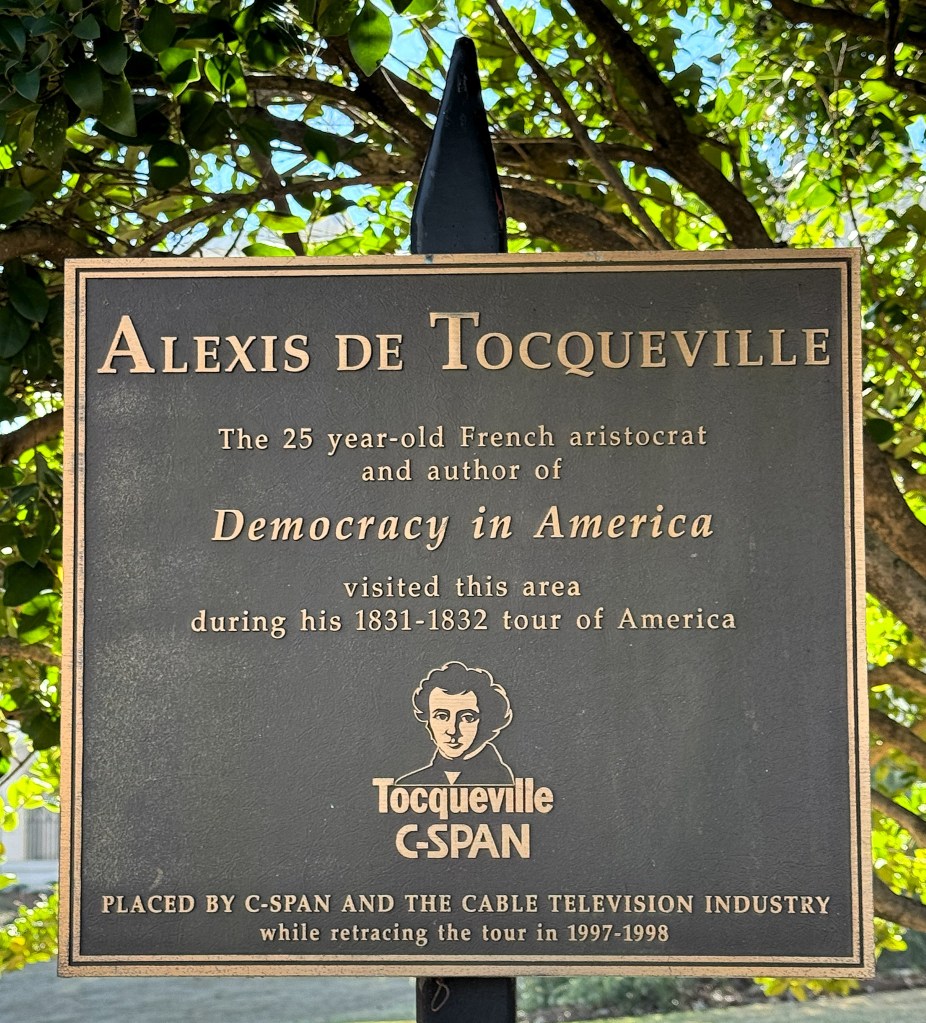 Before the Civil War, Milledgeville’s status as Georgia state capital attracted many dignitaries. Two famous Frenchmen are remembered in particular. The first is Revolutionary War hero the Marquis de Lafayette. The second is noted political scientist Alexis de Tocqueville. Both were French aristocrats who toured America extensively in the early 1800s, praising its democratic forms. Lafayette was one of George Washington’s favorite lieutenants. Tocqueville wrote Democracy in America, which is is often praised as being “both the best book on Democracy and the best book on America.”