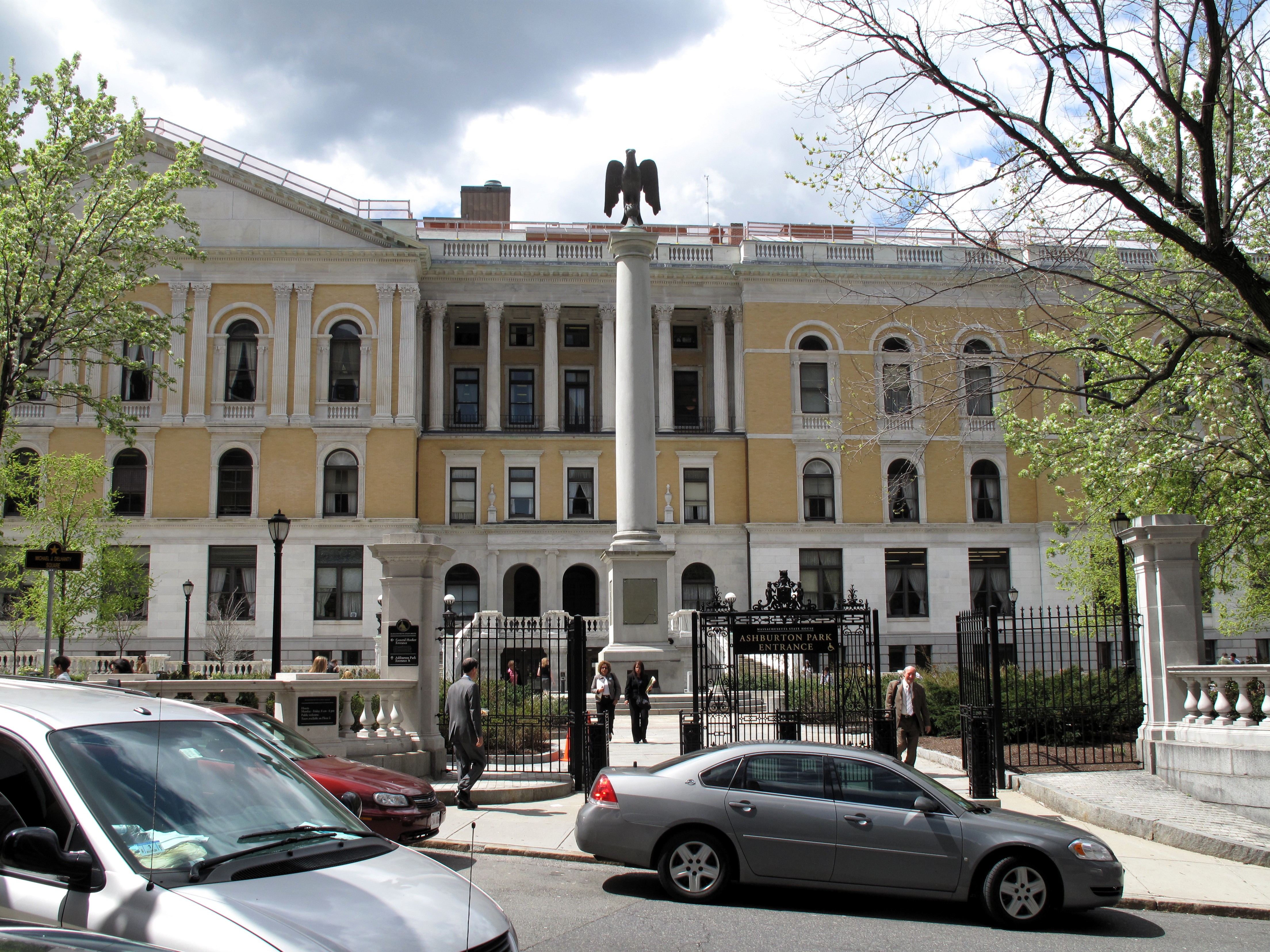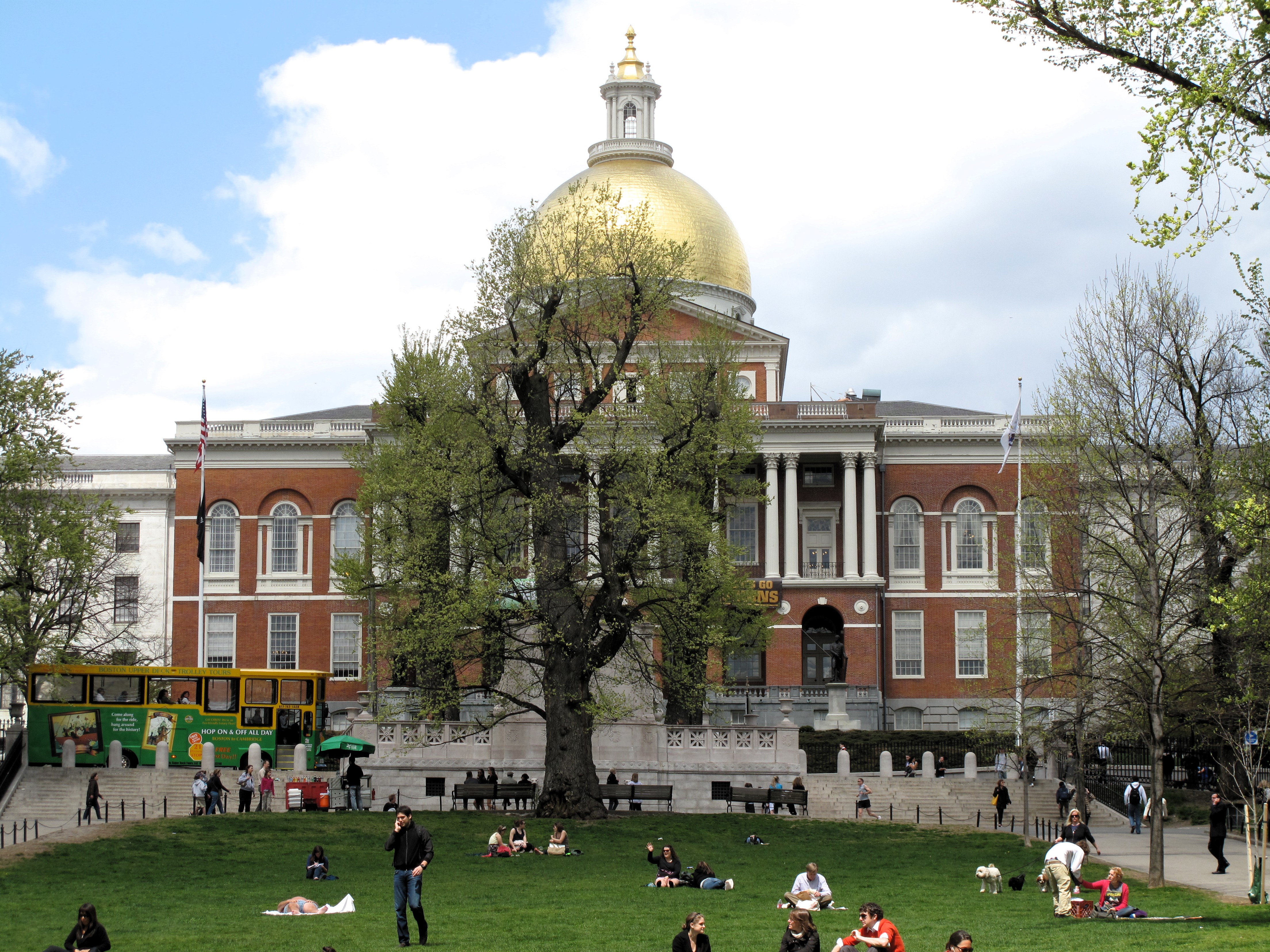 The Massachusetts State House is just a 4-minute walk up the hill from the county courthouse. It has been here for over 200 years. Its gold dome atop Beacon Hill used to dominate the Boston skyline, but nowadays, it can rarely be seen except from Boston Common, the park below its front entrance.