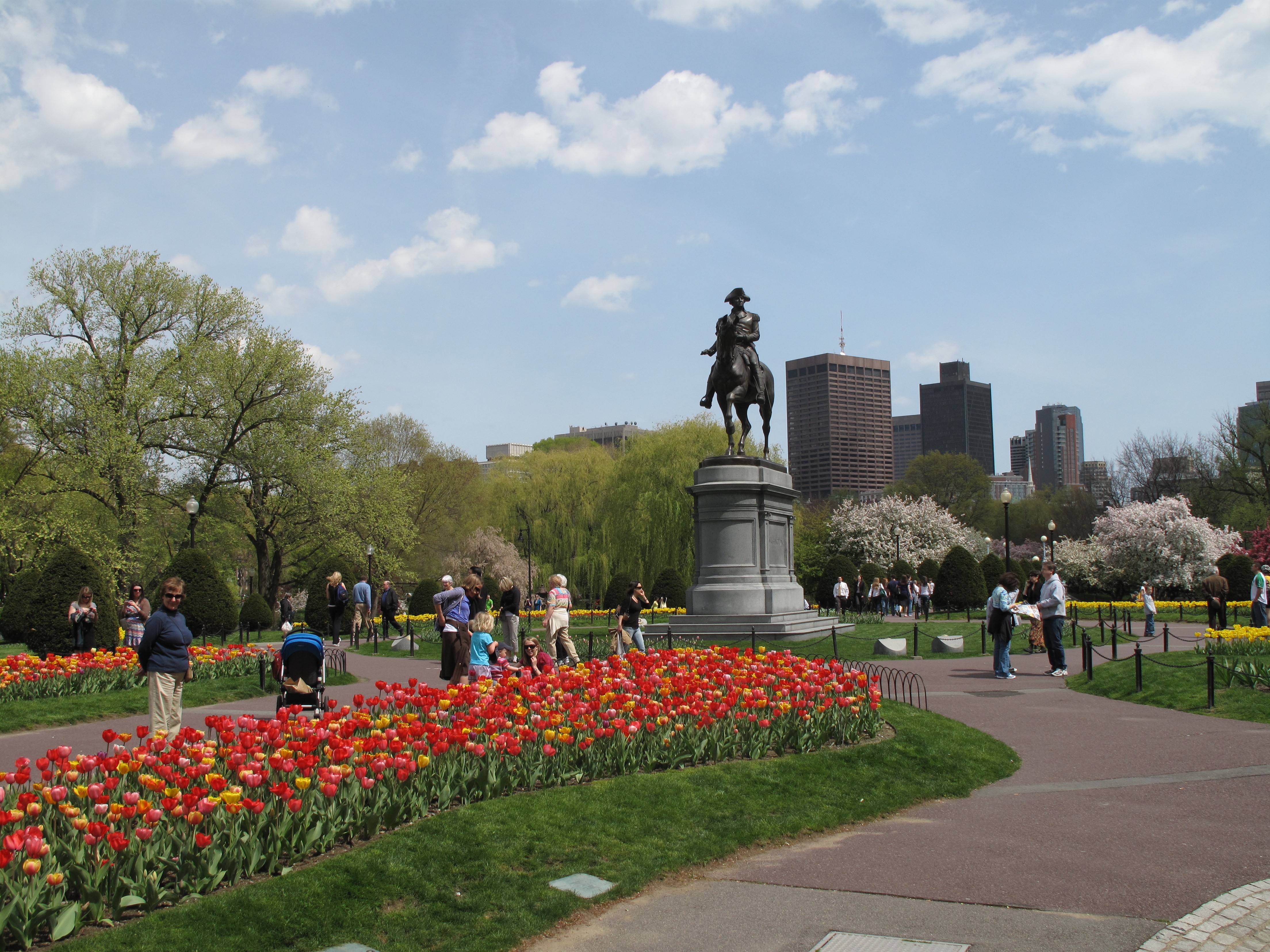 I backtracked past the State House to walk through Boston Common. It was April in Boston. Pictures speak louder than words here, and George Washington‘s statue fits perfectly.