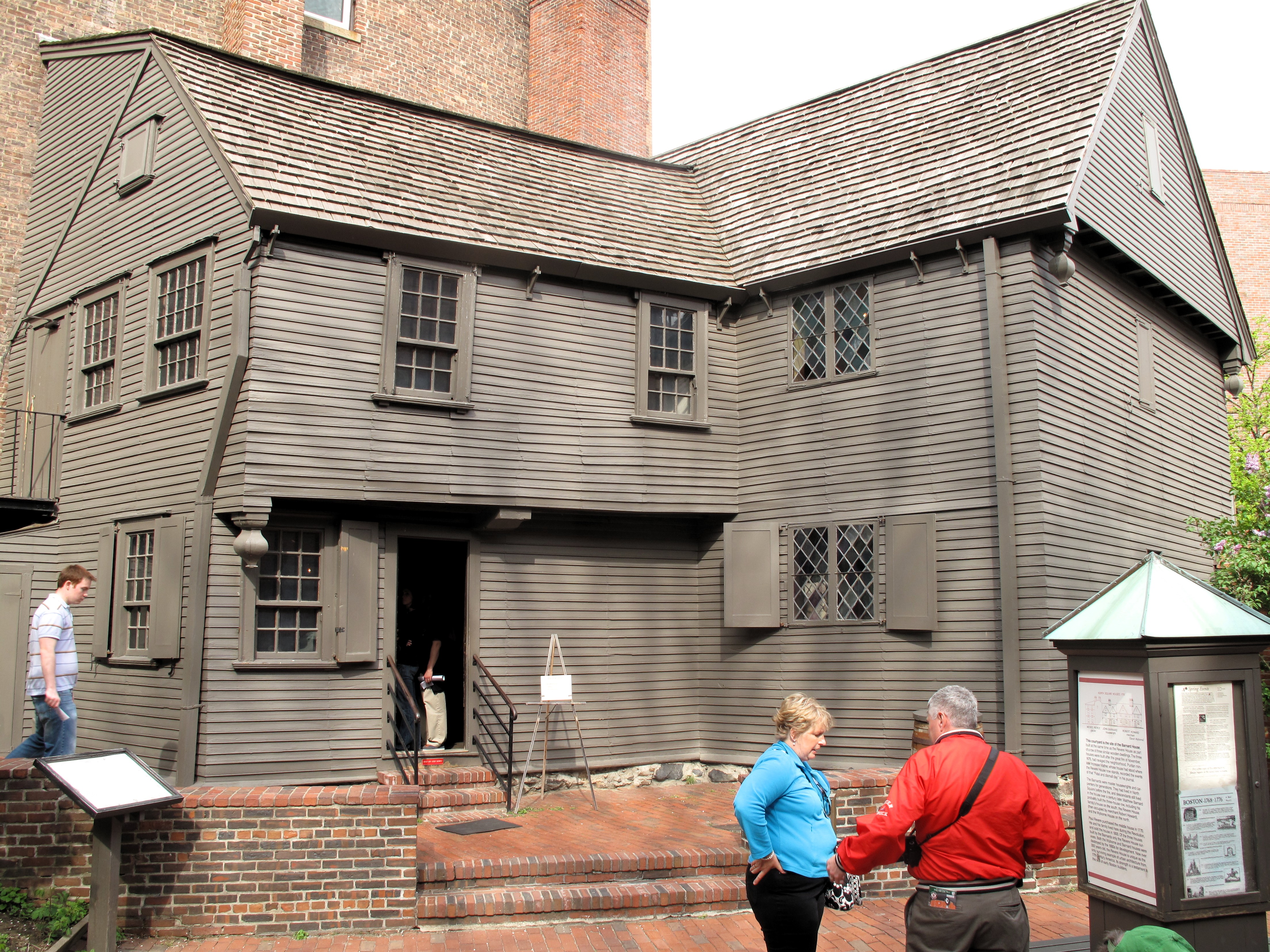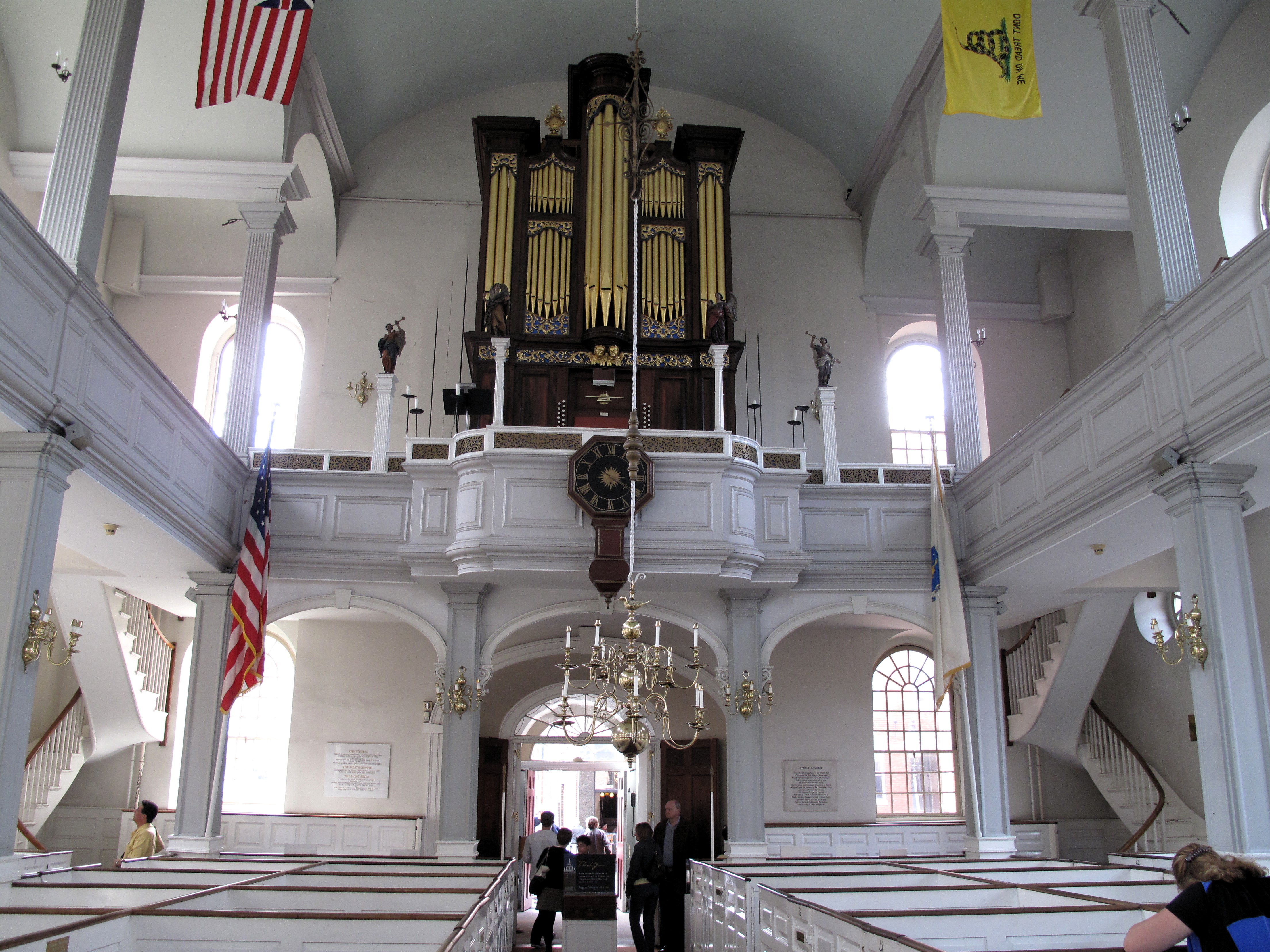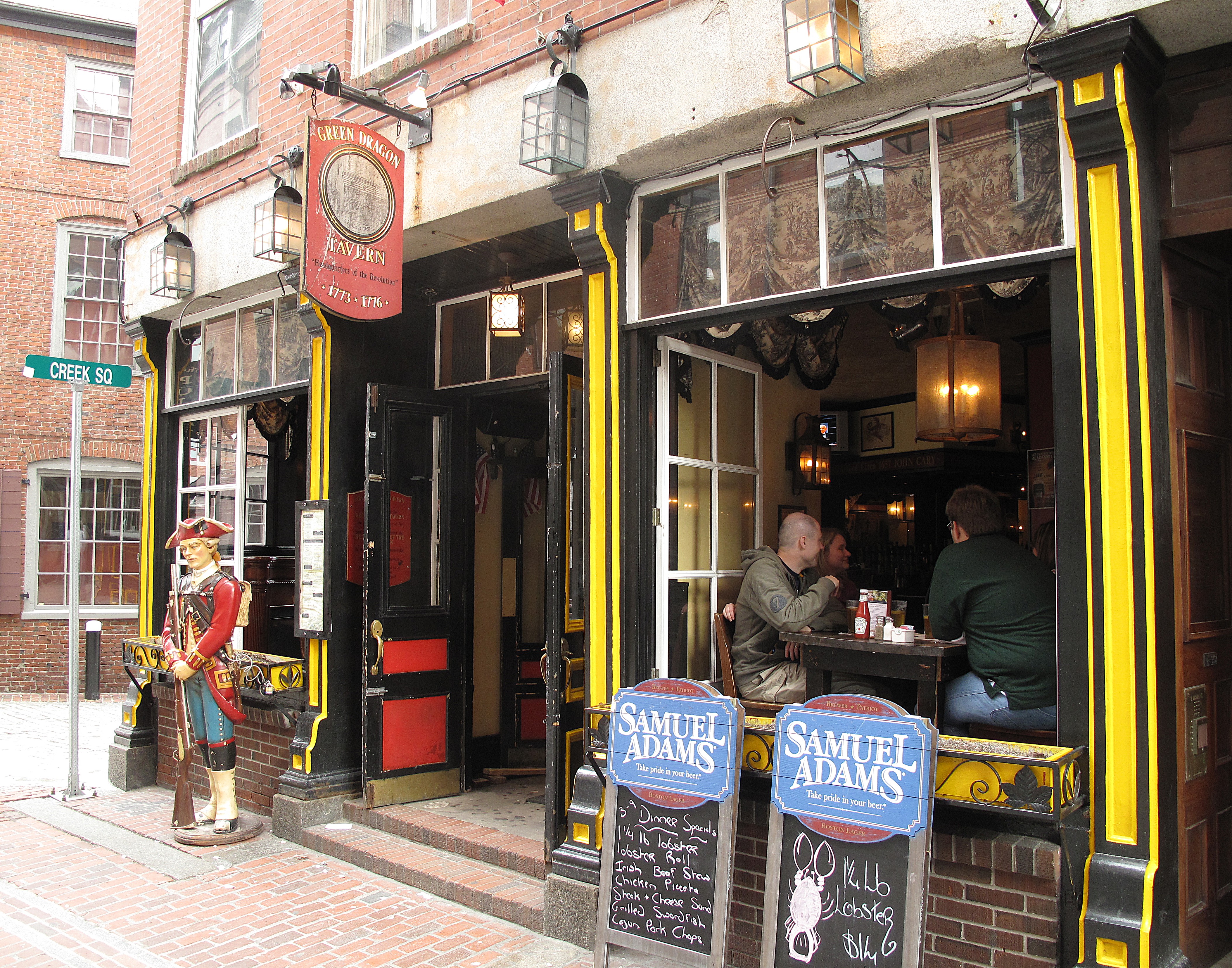 Below (clockwise from top left): Banner of the old Green Dragon Tavern, the Green Dragon Tavern, Paul Revere’s home, statue of Paul Revere, the Old North Church (inside), Paul Revere statue in front of the Old North Church, the Old North Church (outside).