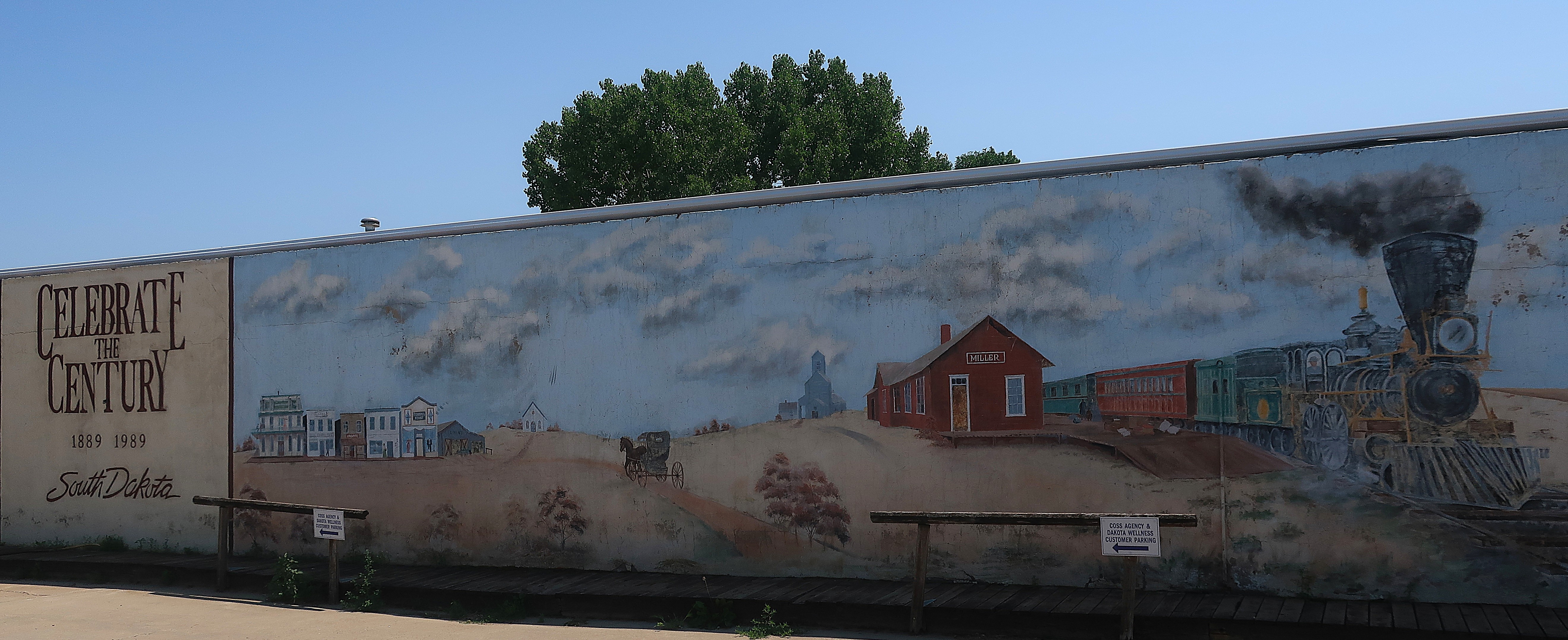 A mural around the corner provides some historical context for this little prairie town. Miller, like so many other places in the Great Plains states, began in 1889 with the coming of the railroad.