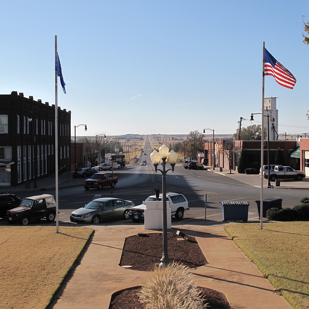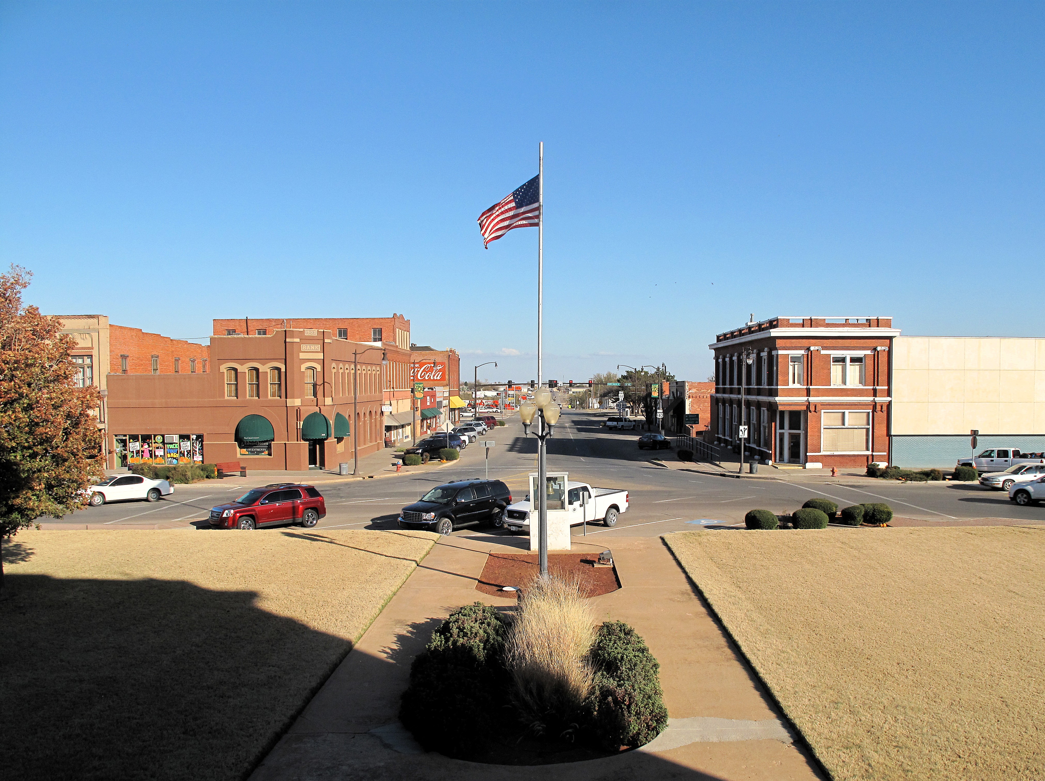 Downtown Cordell, Oklahoma from the steps of the courthouse.