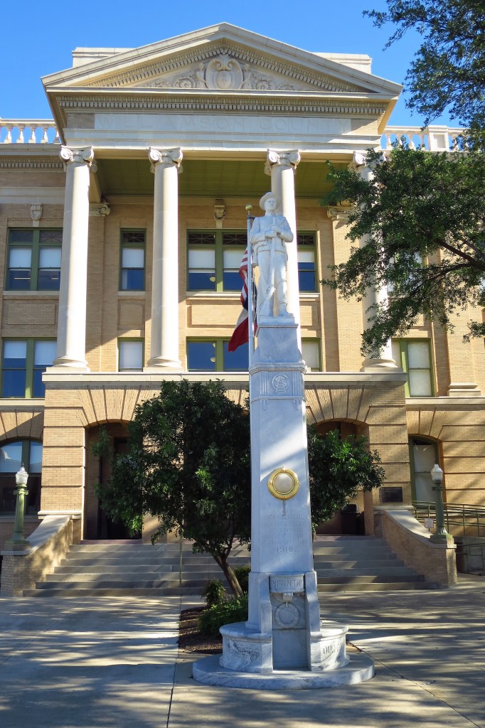 Confederate soldiers’ monument in front of the old courthouse. Georgetown, Texas