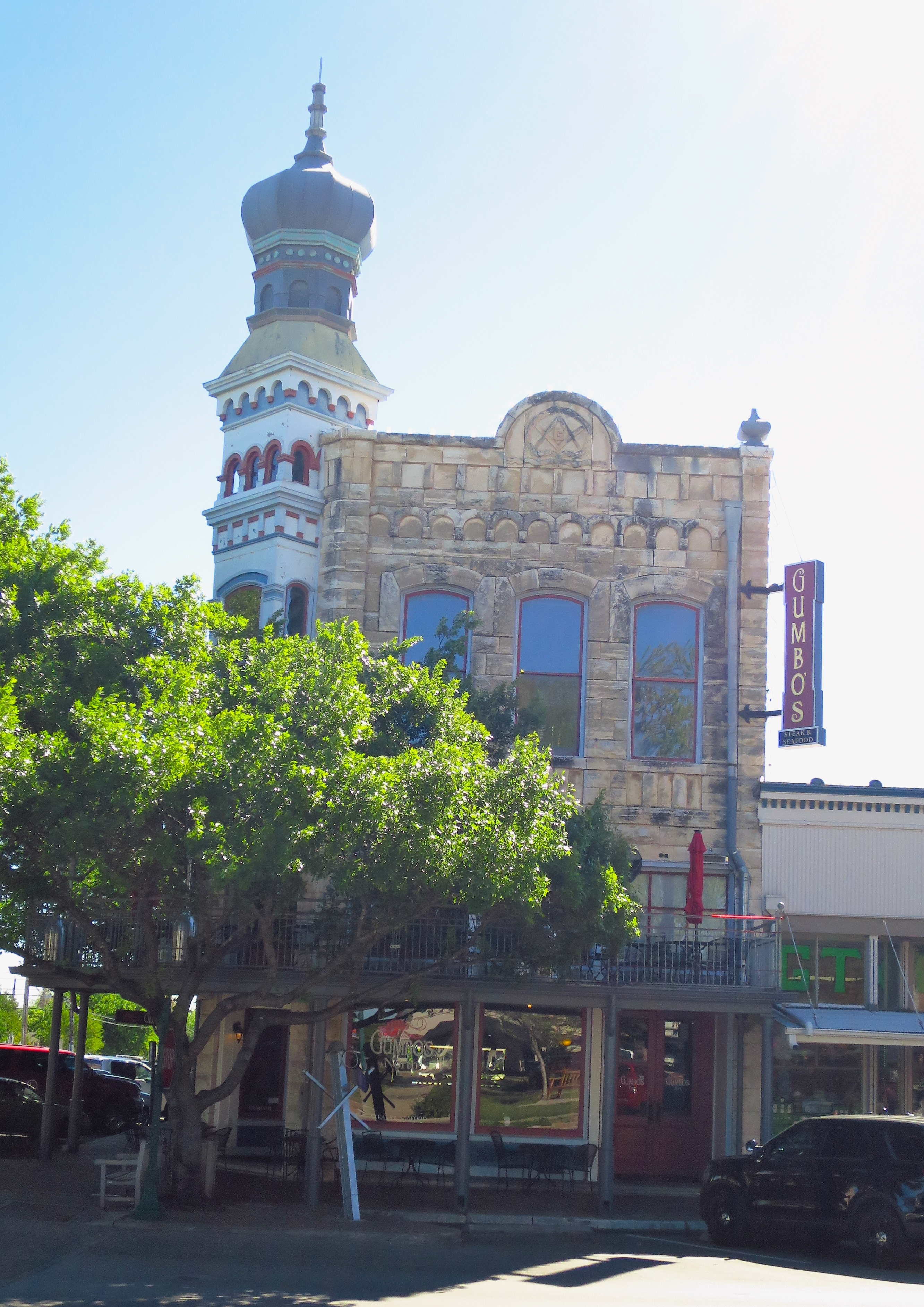 Onion dome structure on a corner building in Georgetown town square. Georgetown, Texas